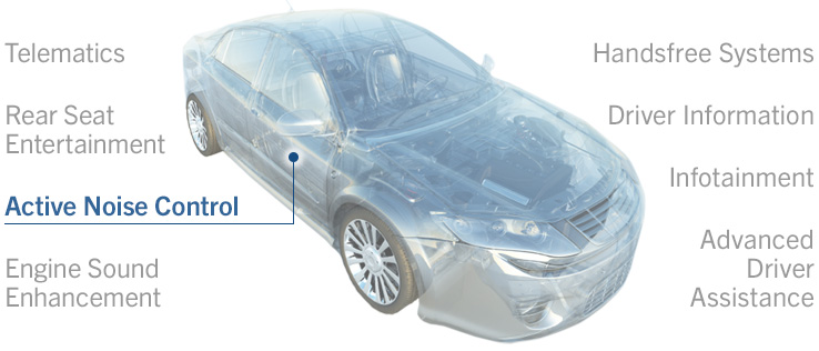To reduce engine noise, automakers use active noise control (ANC), which generates noise-cancelling signals that are played over loudspeakers in the vehicle cabin. The problem is, traditional ANC solutions use a dedicated hardware module, which makes them expensive to implement and unable to take advantage of the latest active control technologies.